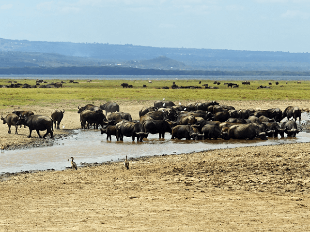 Krajina vo forme trávnatých lúk stúpa ďalej od jazera a mení svoju podobu na skalnaté útesy a rozľahlé lesy, v ktorých na najväčšej ploche v celej Afrike rastie tunajší endemický druh euphorbia candelabrum. Menšia rozloha parku nie je na škodu ani pri pozorovaní väčších zvierat ako sú levy, gepardy, žirafy, nosorožce, vodný byvoly, krokodíly alebo opice, ktoré sú tu oveľa ľahšie a skôr spozorovateľné ako v parkoch zaberajúcich obrovské plochy.